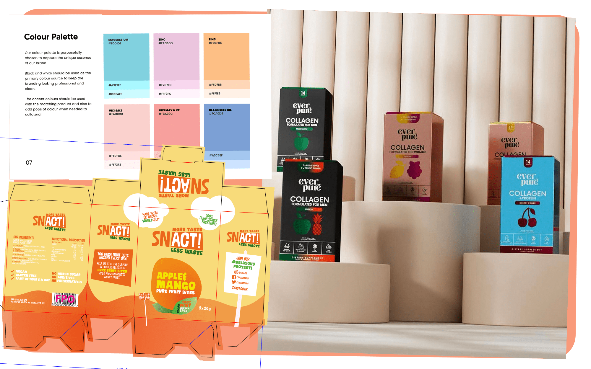 In addition to our creative services, we’ve built strong partnerships with trusted manufacturers across the Supplements, beauty and Food & Drink industries. If you’re looking for support beyond design— whether it’s taking your product into production or sourcing the right packaging solutions—we can help guide that process too. If manufacturing assistance is something you’re interested in, just let us know by including it in your brief, and we’ll be happy to connect the dots.