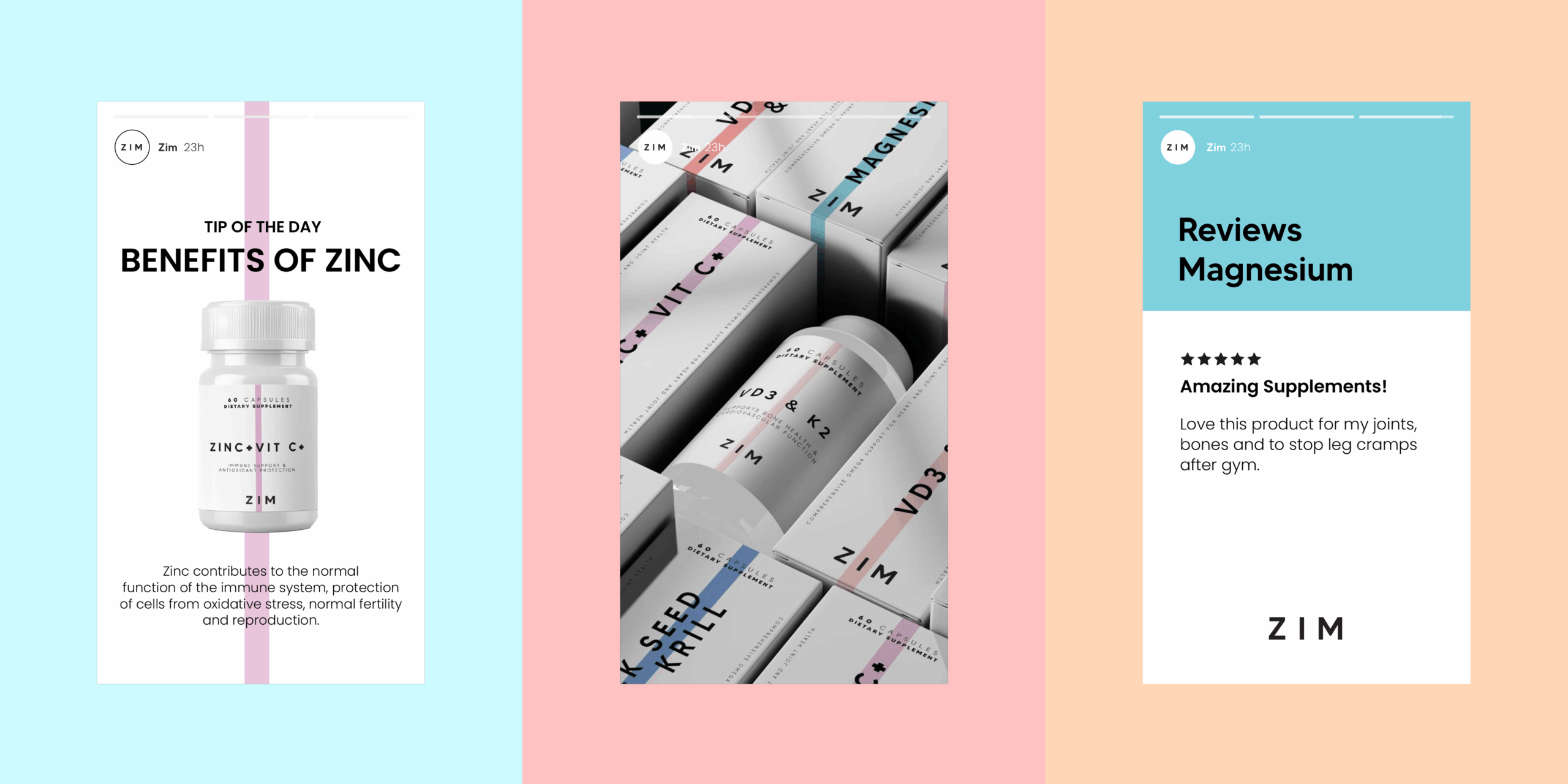 Working with Zim, the aim was to create a minimalistic packaging with a futuristic look & feel (and of course adding in a pop of colour!).